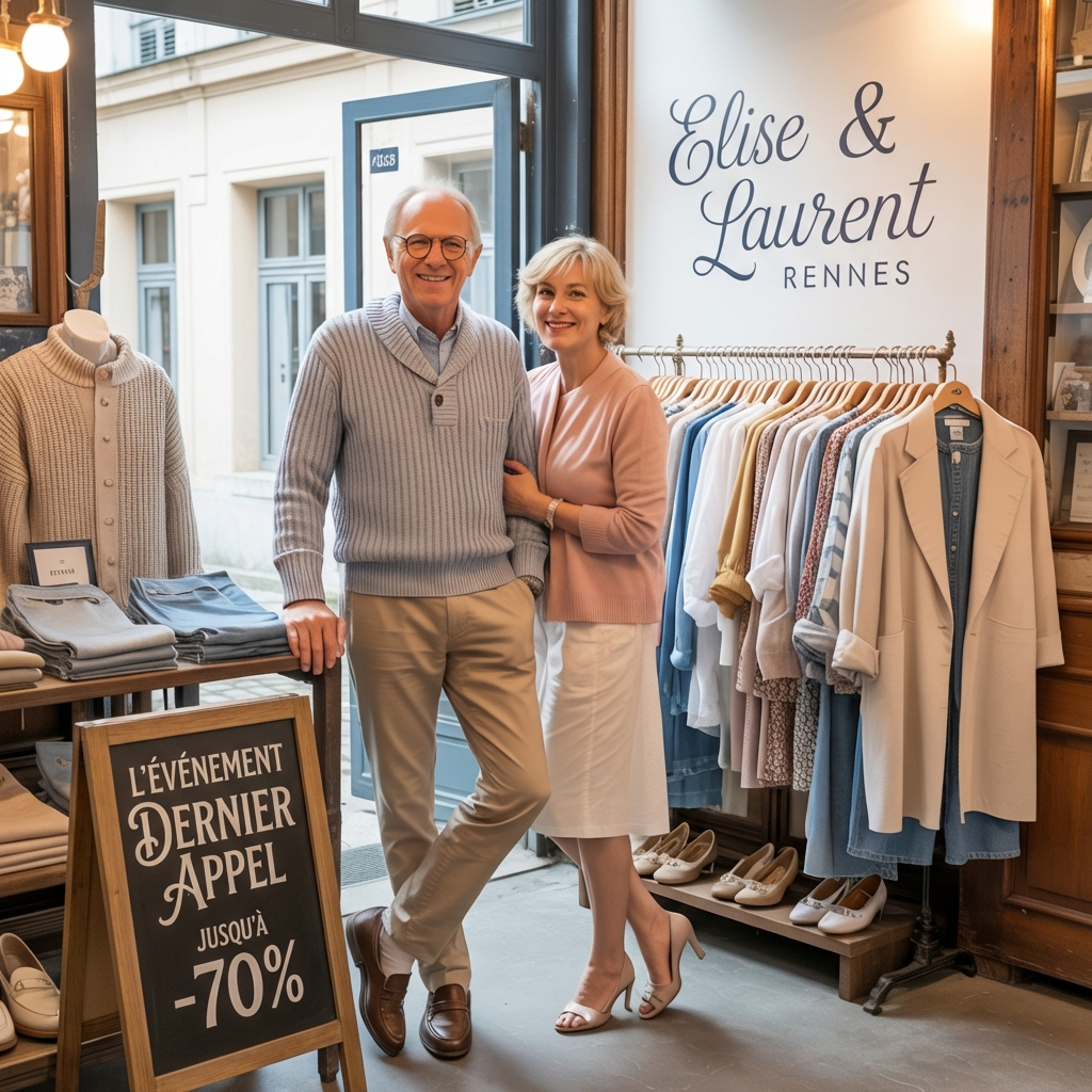 Bonjour, nous sommes Elise & Laurent. Depuis 17 ans, nous mettons toute notre passion dans la sélection et la composition d’une collection de vêtements conçus pour durer, et pas seulement pour une saison. Aujourd’hui, les grandes chaînes de magasins ont pris le dessus et nous nous préparons à fermer définitivement nos portes.